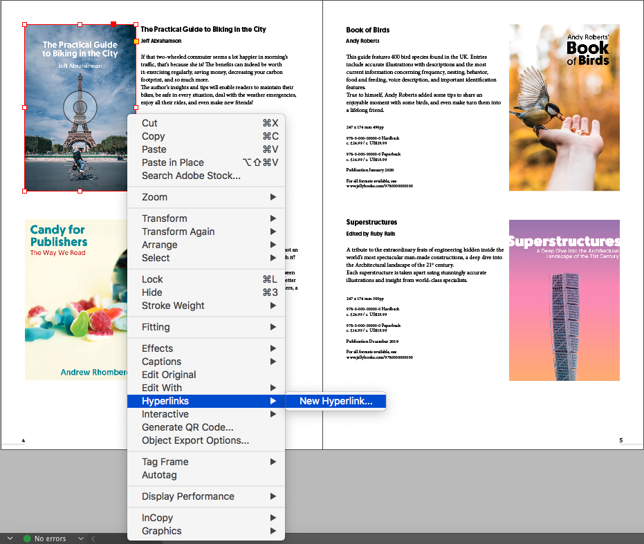 For instance, to add a hyperlink for each sample to its respective cover, select the object frame of the cover, right click, and select “Hyperlinks > New Hyperlink”.
