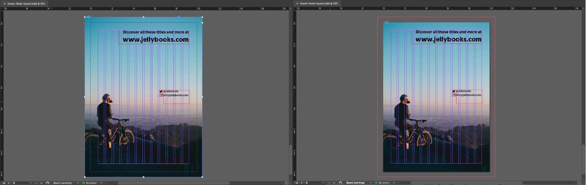 In this example, the left image bleeds off the page, the right image shows the adjusted object frame.