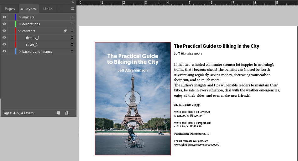 In other words, the logical order is reversed in the “Layers” panel. If we add another book, then its object and text frames should come on top of the existing layers: