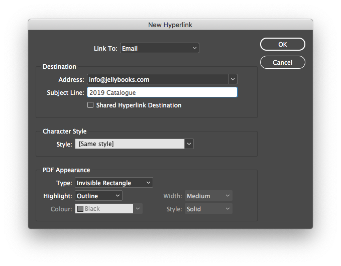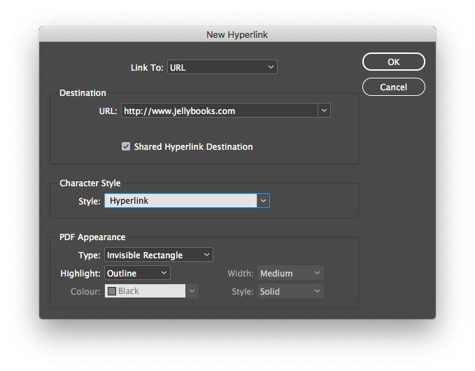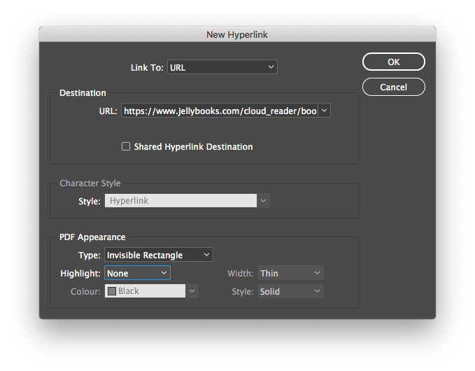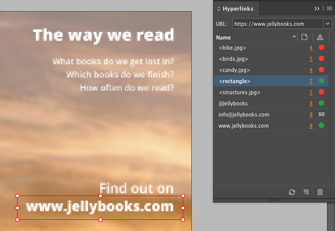 As a final step, check that your URLs are correct in the “Hyperlinks” panel.