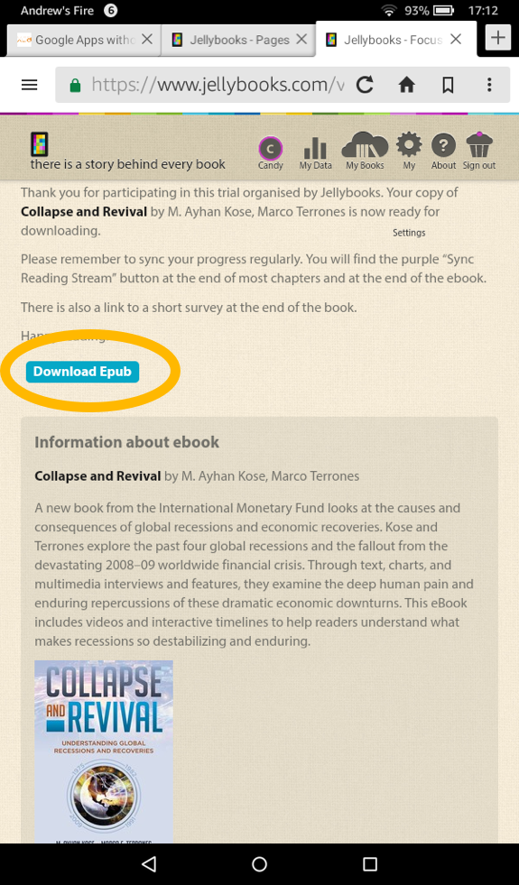 Visit www.jellybooks.com, click on "My Books" and select the book you wish to read (by clicking on its cover), then click the blue "download ebook" button)